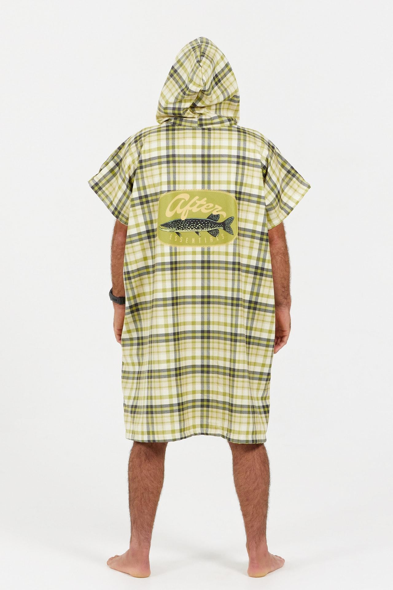 The Pike Poncho from the American Fishing Series embodies the spirit of river fishing, with a rawer, more rural aesthetic. Its all-over check print recalls the classic shirts worn by fishermen, while the bold artwork on the back pays tribute to the pike — ruler of freshwater and an emblem for passionate anglers.