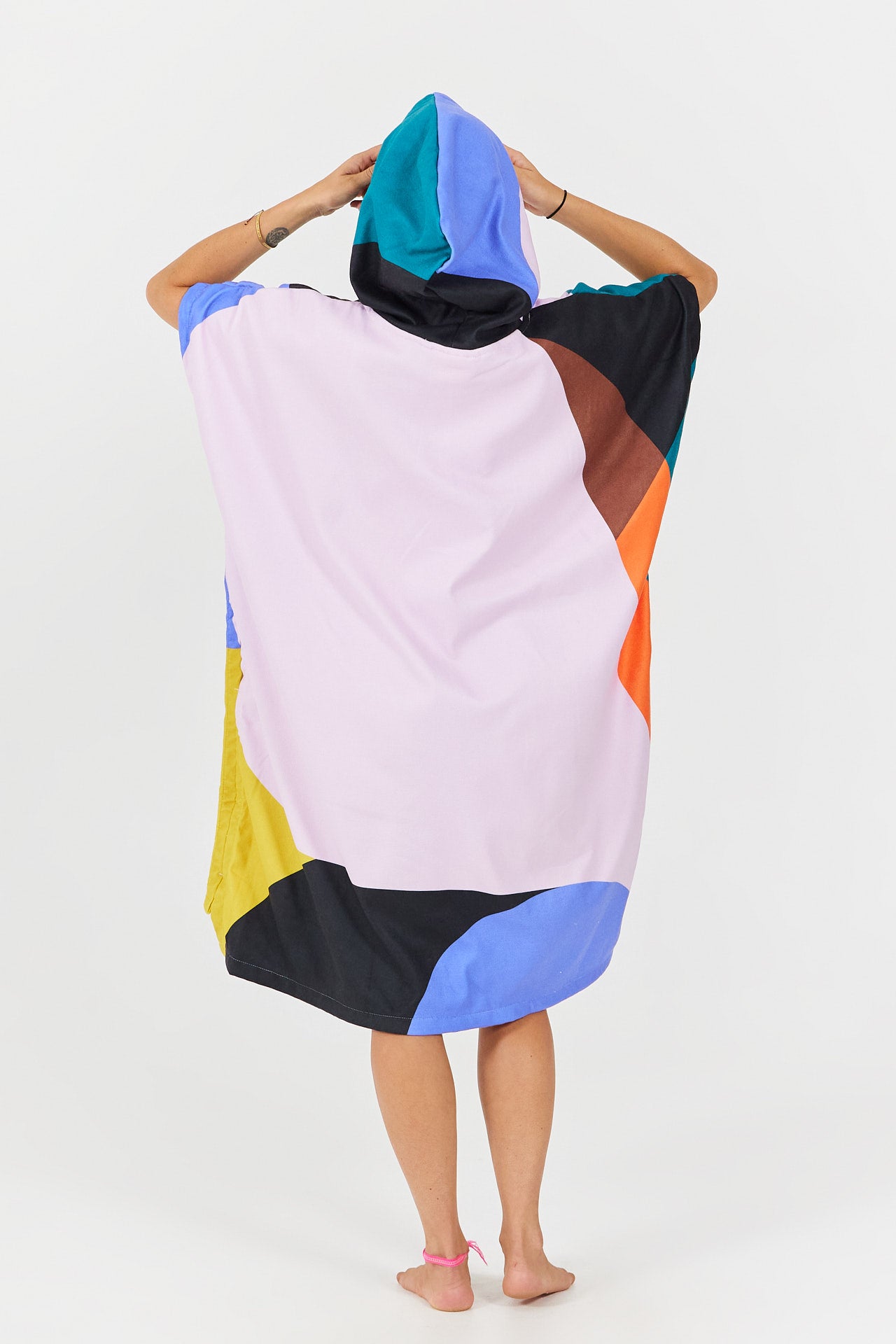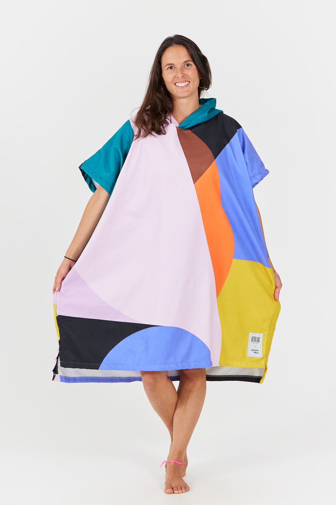For his collaboration Poncho, Jérôme explored abstract yet highly distinctive color blocking, bringing a true urban vibe to the beach poncho.